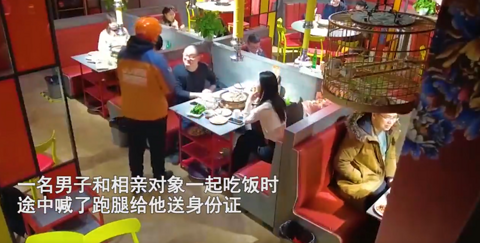 一名男子和相亲对象一起吃饭时,途中喊了跑腿给他送身份证,然而相亲对象看到后心中瞬间犯起了嘀咕,随后拿起自己的东西转身就要离开,男子连忙追了出去可还是没有追上,无奈之下和跑腿小哥大吵了一架。