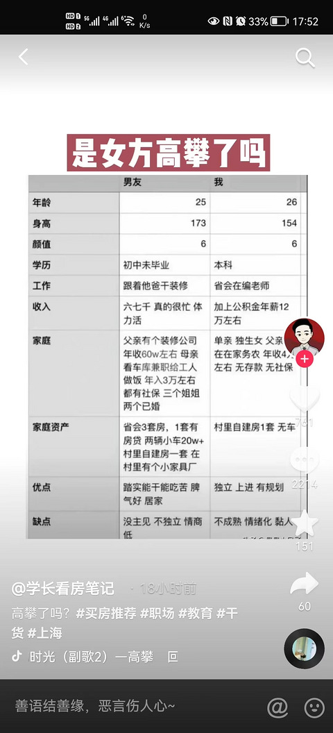 抖音上看到一个帖子,欢迎大家发表意见。