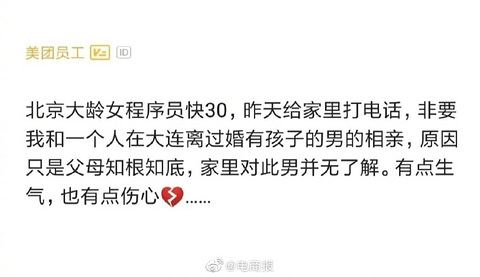 大厂女程序员不到30岁,父母让和离异有娃的男人相亲