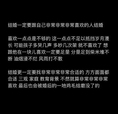 结婚一定要跟自己非常非常喜欢的人,喜欢一点是不够的