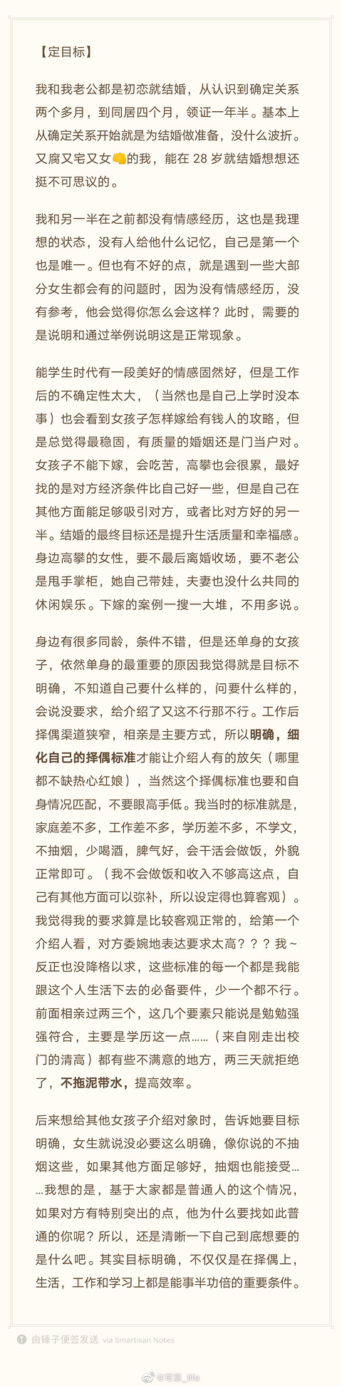 转发 仅以我自己的经历和身边的观察,来说一下关于脱单,择偶和情侣相处的经验吧。目前认识共6年,结婚4年半,无孩子,感情稳定,觉得有伴侣后比单身时快乐幸福很多。 絮絮叨叨了四千字流水账,给姐妹们参考下。
