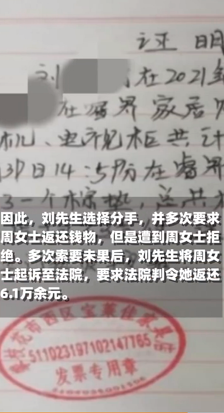 女子嫌52元红包少被诉还6万恋爱花费,男方:感觉自己被骗