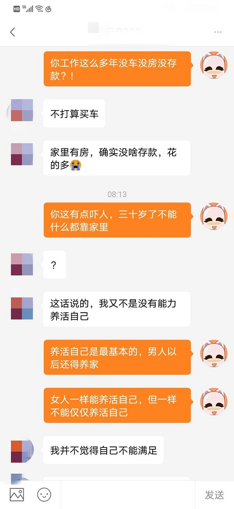 该男收入与我差不多,长相一般,身高172?175?照片身材瘦小,近视,只对标收入仅及格而已。学历家庭未知,未见面,已拉黑。 过程: 1.开始打招呼,要求发户外全身照(本人头像就是全身),特殊要求,拒之,后面十来句对话就约见面,工作日很忙,拒之。于是,他破防了。 2.就开始pua冒犯工作女性,自以为是,指指点点,开始3-4句我简单捧杀阴阳他,他还上头了。看他输出长篇大论(可惜当时没截图),后面我闲了