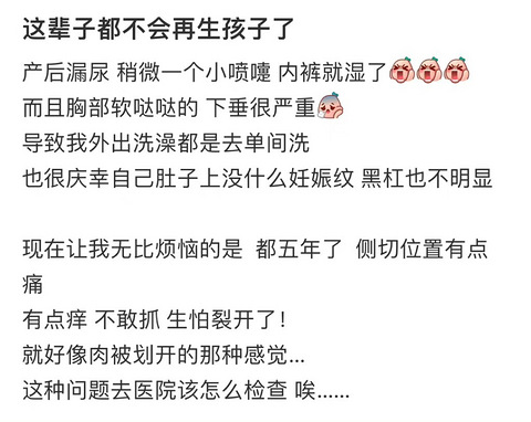 这辈子都不会再生孩子了,都五年了,侧切位置还痛