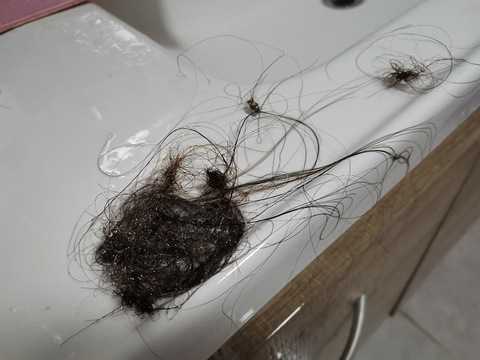 出去洗个头 理发师虽然觉得说实话很伤人但也都说掉的有点多了 洗个头就是下图的状态 地上随便一ha 就是这样的简简单单梳个头就这样了求问 有什么养发小妙招之类的 哺乳期可用[ej=1F62D][ej=1F62D]