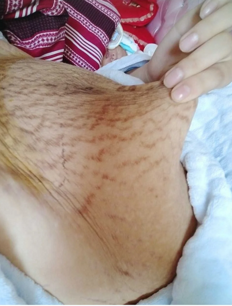 怀孕前的体重是98斤,孕晚期涨到150斤,我原以为生产完之后体重会掉大概15斤呢,但却完全出乎我的意料,体重只减少了10斤。生完宝宝已经第22天了,恶露还没有排干净。肚子产后也还没有恢复,我妈说我产后的肚子还跟怀孕5个月似的。肚子上妊娠纹也很严重,肚皮像枯树枝一样。
