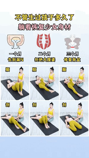 不管生过孩子多久了,躺着恢复少女身材!一个月告别漏尿,睡觉前做一百个,[吃瓜群众]二个月拒绝大腹婆,每天两分钟收紧腹部三个月修复骨盆,瘦肚子瘦腰两不误![机智]练习这些动作,一百天重回孕前身材~每天睡前运动享受出汗超酸爽的感觉,你会感觉到身体脂肪在高度燃烧,减少脂肪!动作幅度不用太大,只需交替运动腿部~可是持之以恒可不容易呀!一定要坚持练习哟~