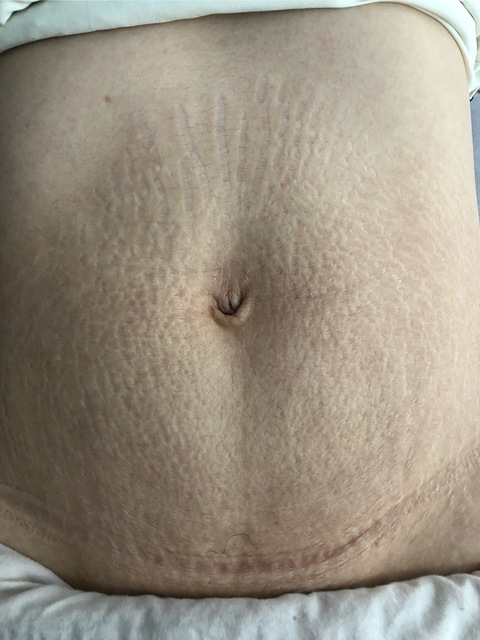 本人怀孕之前有马甲,皮肤非常紧致,结果怀了双胞胎,整个肚子的纤维组织全部裂开,变得又松又跨,后面做了提升紧致以及纹路的改善,现在才做完一个疗程,已经修复好了很多了,再坚持一个疗程,80%-90%左右应该问题不大,现在很有自信的跟没生孩子的朋友说,随便生,不要怕,有纹可以解决[ej=1F60F]