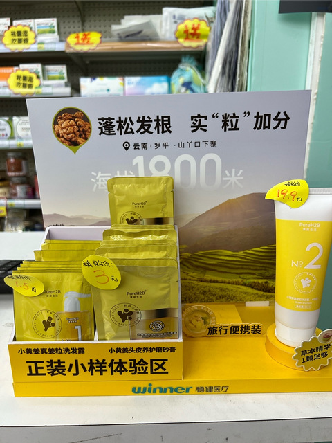 本来头发就少,生了娃儿之后都掉得秃了,特别是产后3个多月开始,每次洗头都掉黑多,掉得我都有点怕了。有天去药房给娃儿买维生素D,然后就看到前台放了这个小黄姜洗发水,工作人员说这个效果还可以,可以先买试用装试试。1.5一袋,我买了6-7袋,用了之后确实掉得少了。