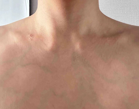 坚持母乳两个月了,胸前血管很明显,一直延伸到胸,第一次看见有点吓人,有点像科幻片那种变异一样,之前听说孩子吃母乳等于喝血 ,这不就是呢。