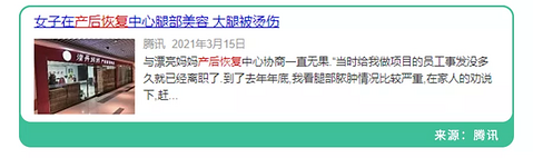 我正在参加重庆购物狂2021年10月孕期龙门阵活动,赢55°保温杯套装哦!https://go.cqmmgo.com/forum-207-thread-174421632983113567-1-1.html 娃出生以后,妈妈们就立马启动了“产后修复模式”。什么束缚带、骨盆修复、盆底肌修复、卵巢修复.......十八般武艺都得往自己身上套。但这些修复手段都靠谱吗?下面这位宝妈,在产后修复中心惨被烫