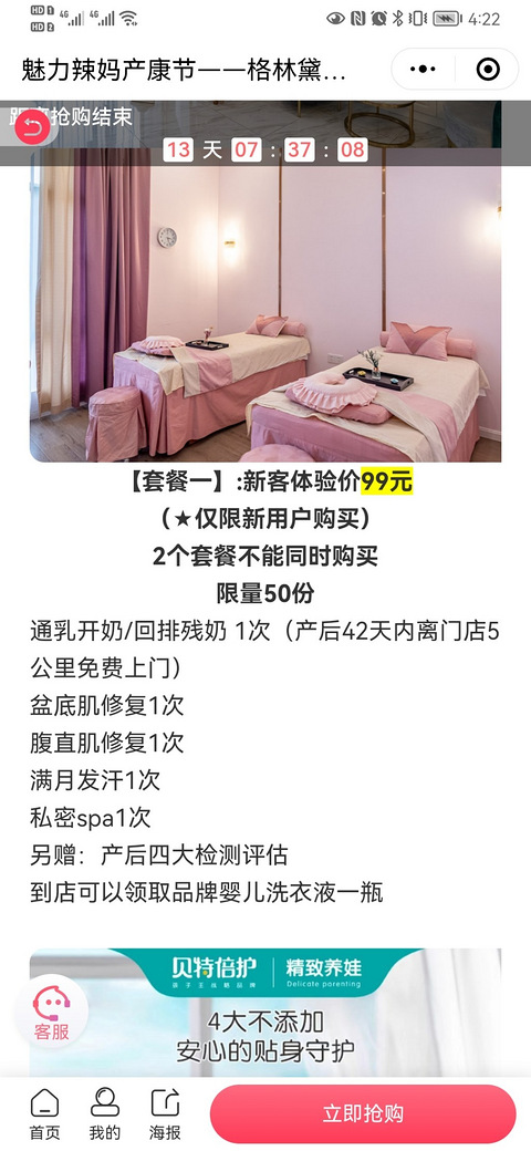 姐妹们,你们都做产后修复了吗?楼主产后一年多了,之前由于追奶、重返职场还每天背奶,加上跑项目又经常出差,所以一直没有好好做做产后修复。今年真的很多行情不好,楼主的公司也是精简了很多人,现在工作轻松很多,但是也让我慢慢陪娃的时间更多,也希望能好好调理一下自己的身体了。这个99元的团购套餐项目挺多的,地址就在家附近的原著天街对面,非常方便。预约了今天上午过去了解感受一下,毕竟产康的坑还是挺多的,最怕遇