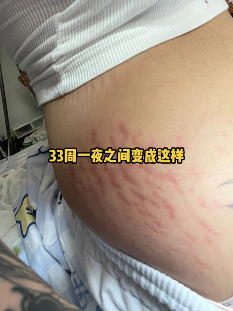 怀孕生子真的是需要很大勇气……这位妈妈怀孕33周的肚子,一夜之间妊娠纹就爬出来了。