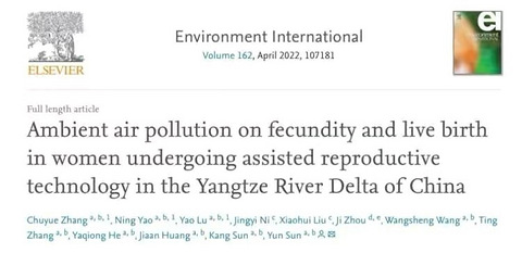 近日,上海交通大学医学院附属仁济医院生殖医学科孙贇教授团队在环境健康领域国际权威期刊《环境国际》(Environment International,影响因子IF=11.694)发表最新研究成果,发现空气污染物暴露显著降低试管婴儿助孕女性的活产率。研究结果提示,试管助孕夫妇应尽早做好个体化保护措施,改善居住环境空气质量,减少可避免的粉尘、尾气暴露。流行病学研究及基础研究结果显示,空气污染物暴露能够