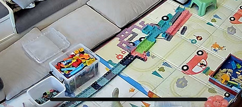 小朋友把玩具连成一长串