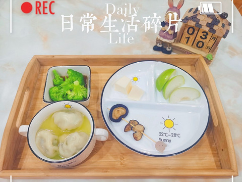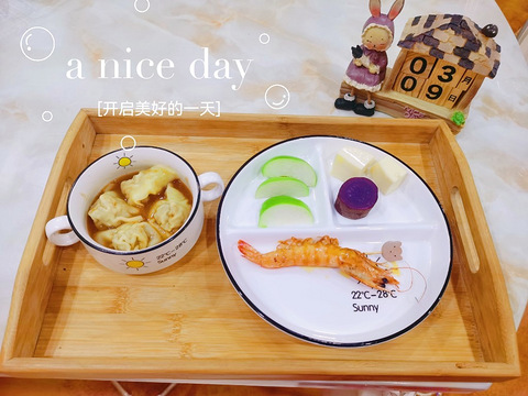 主食:抄手蛋白:煎虾奶酪块,紫薯,牛奶枣