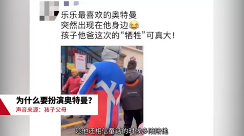 近日,湖南长沙的张先生为了满足自己孩子的梦想,装扮成奥特曼到幼儿园接孩子放学。张先生表示由于工作原因自己没有过多时间陪伴孩子,错过了孩子很多成长的瞬间。孩子平时特别喜欢奥特曼,这个惊喜正是为了给他圆梦。 太有爱了,哪个小男孩不喜欢奥特曼呢!而且奥特曼还是自己的爸爸! 孩子父母说得很好,趁孩子还相信童话的时候多陪陪他,你们有这样的觉悟的吗?