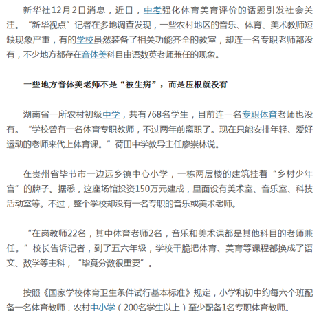 还有地方没有音体美老师,全国音育美育体育道路任重道远