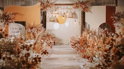 仪式区复古风格尽显优雅,背景的撞色描绘出细腻高级的轻奢格调,空气众都弥漫着浪漫大气的情调