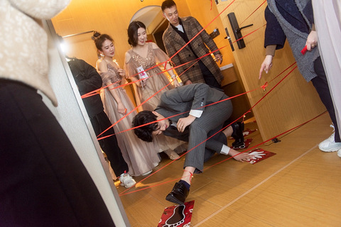 秉承着接亲就是要“为难”新郎的同时,保持大家都体体面面,于是我搜遍网络,准备了这几个游戏,效果真的很赞,现场氛围一直很欢乐,也给大家都留下了不少好看的片片~~~供正在备婚的姐妹参考嗷![/亲]1、手忙脚乱+穿越红线 怎么说?新世纪文明接亲,不堵门,但是也能让新郎寸步难行!(此游戏仅适用于大部分只有朋友的酒店接亲or亲戚比较内敛的哈哈哈,如果小孩多,分分钟把道具弄乱,懂得都懂,慎选!),我的贴纸和红