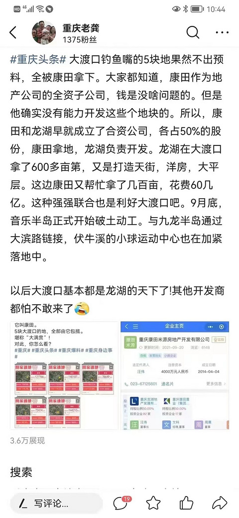听说康田在大渡口拿的地,龙湖负责开发?真的假的,知情人士透露一下