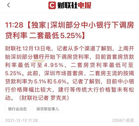 深圳下调房贷利率,首套4.95%,二套最低5.25%,这是?