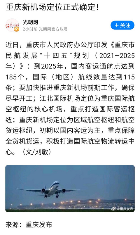 1. 江北机场定位为重庆国际航空枢纽核心机场2. 新机场定位区域航空枢纽,积极打造国际航空物流转运中心。说明江北机场T3A,T3B不是随便乱修的,新机场感觉更多要承载之前说的国际货运机场的任务。