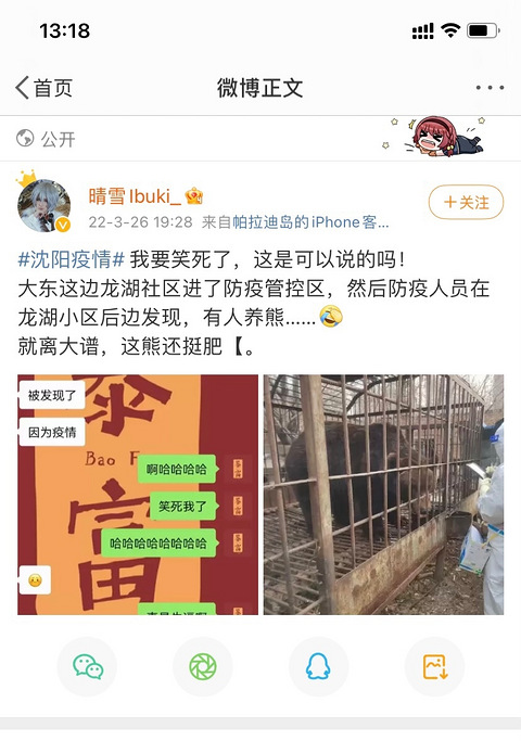 沈阳疫情,龙湖社区有人在小区里养熊被发现了。。