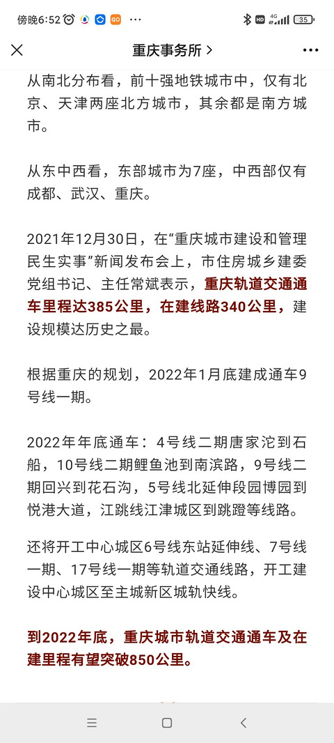 重庆轨道交通,通车385KM,在建340KM