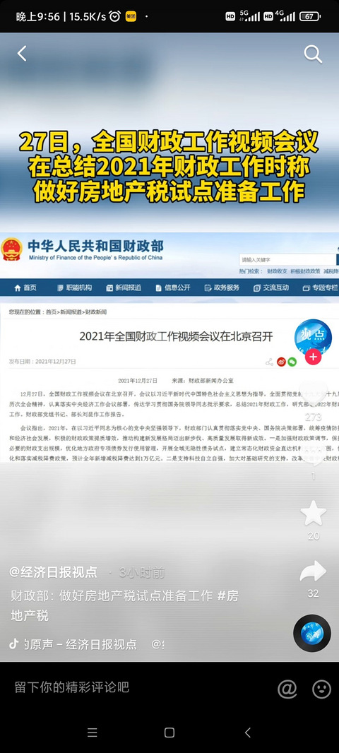 27日2021财政工作总结做好房地产税试点准备工作,中介P图说房地产税延缓执行的打脸