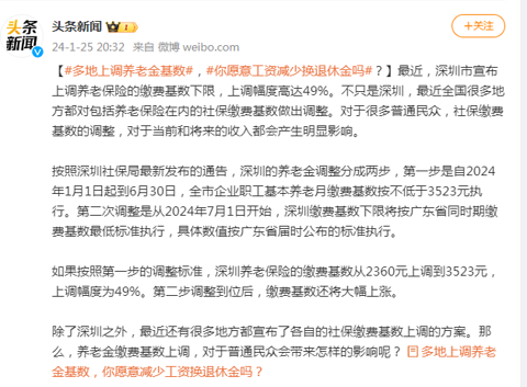多地上调养老金基数,你愿意工资减少换退休金吗?