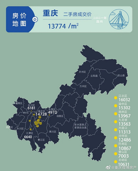 重庆四月房价地图出炉房价整体上涨,成交均价13774元/㎡!
