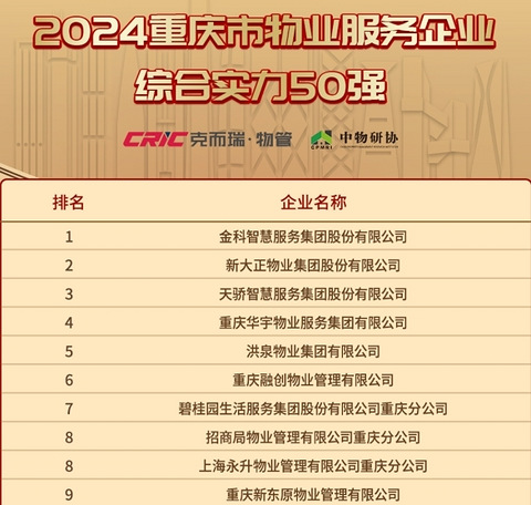 2025年重庆物业十强名单,住这些小区完全不用考虑换物业