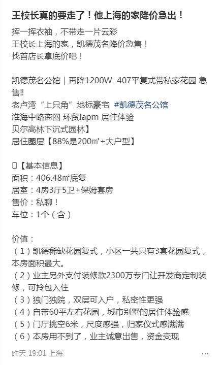 王思聪上海豪宅降价急售,再降1200w