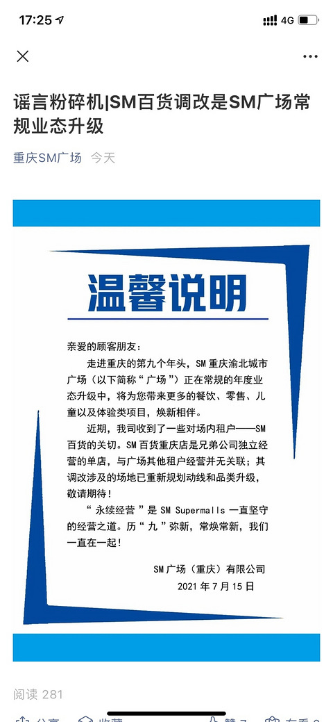 官方辟谣!SM百货调改是SM广场常规业态升级