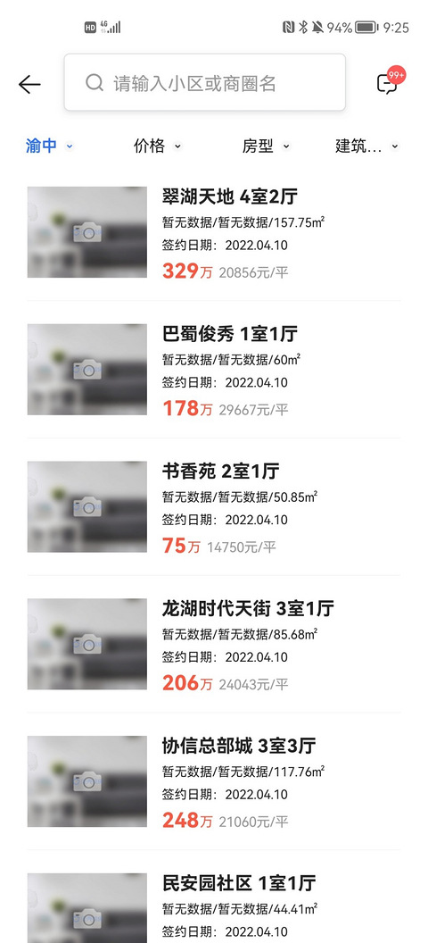 渝中成交价开始发力了。时代天街还达到了二万四一平