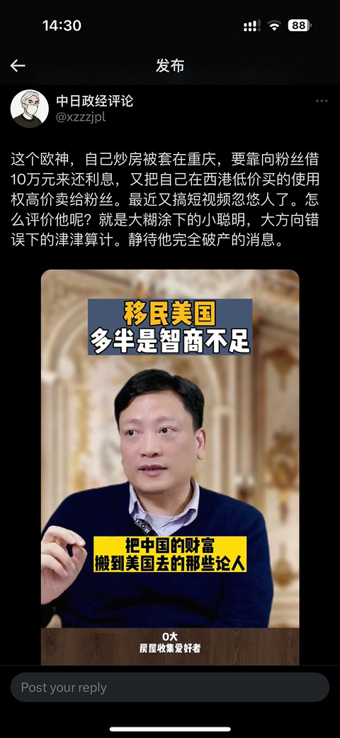 不管是为了吹牛也好,论坛打嘴仗黑一下也好,真的没必要吹,自己说的买的120大三室,发的房产资料证明上却是100的[ej=1F602][ej=1F602],并且多位人员揭穿他假消息后,他都私信骂人,然后拉黑! 日常镇楼图,神棍在此.......