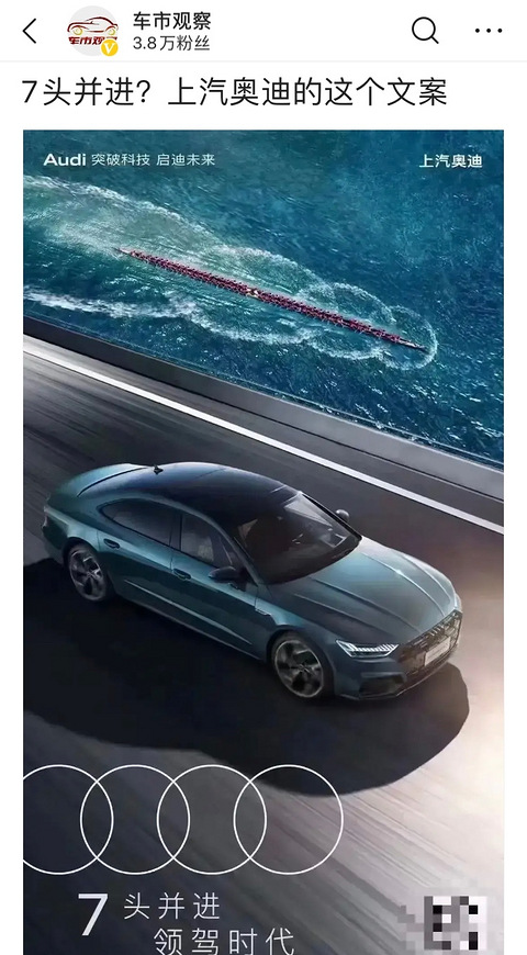 会失去整个大粤语区的接盘侠,最近奥迪A7的广告7头并进被广东人骂上热搜,广东广西人对7确实忌讳啊[ej=1F602]