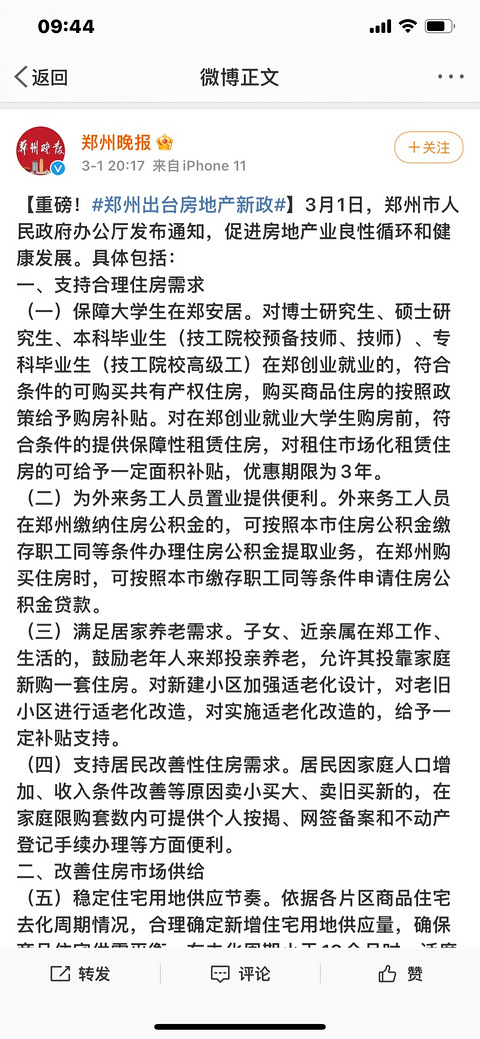 郑州这次的救市政策力度空前,是第一个变相取消限购、限贷、限价的省会级城市。效果如何拭目以待吧。