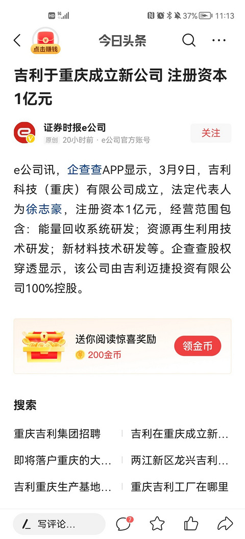 吉利再次在光电园附近注册新公司,吉利科技重庆有限公司