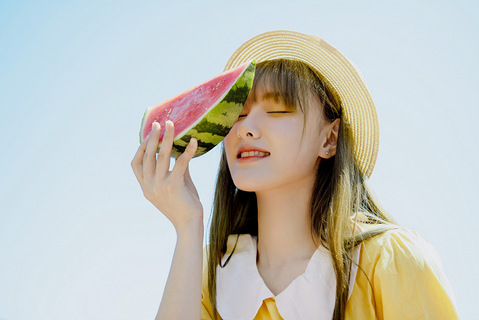 夏天的标配是西瓜,我一般喜欢把西瓜一分为二,抱着半边西瓜用勺子炫! 在炎炎夏日的外景应该怎么拍,我觉得应该这样拍,看着又清爽,拍完之后还可以炫西瓜,想想都开心 ! 看着都很清纯的一套照片!
