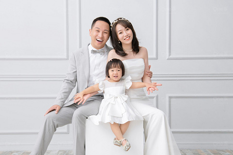 很多宝妈可能遇到过这样的一个问题,自己的小孩看到爸爸妈妈的婚纱照和婚礼的照片,会问爸爸妈妈,为什么照片里面没有我呀.... 所以,现在很多宝妈会趁着拍全家福的机会带着小朋友一起去拍照,都会选一套婚纱系列的,如果是弟弟,那就多了一个保护自己的小铠甲,如果是妹妹,这下家里的萌宝就再也不会问这个问题啦 先来个镇楼图,是很可爱的一家人啊!