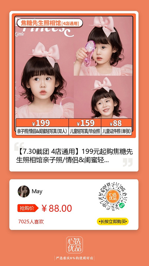 购物狂23年的品质写真第一团我宣布:正式开始!!晓得大家等久了,也晓得大家的期待人气商家/老朋友!还有重点:优惠!我都给大家搞来了!「米拉摄影」「北鱼摄影」「沐秋摄影」「尤麦摄影」「木棉纪摄影」全家福/纪实/情侣照/复古/创意写真团购:669元起!订单还送电火锅哦 另外:购物狂还招募小团长啦!可得精修,可拿佣金,你们自己说了算哇