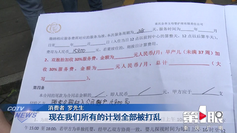 第1眼-重庆广电消息,今年8月份,市民罗先生与大学城金香玉月子中心签订服务合同,缴纳了1万5千多块钱,准备等孩子出生后就去月子中心。现在,孩子快要出生了,这家月子中心却出了问题。