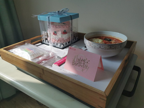今年的生日很特别,第一次一家三口在一起,第一次在月子中心过生日