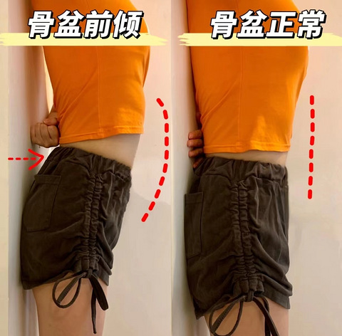每天10分钟,改善骨盆前倾是真的首先靠墙站立自测一下肩膀,臀部贴墙,腰离墙一个拳头距离,那就是严重骨盆前倾,手掌距离是正常的骨盆! 转自奶绿养乐多