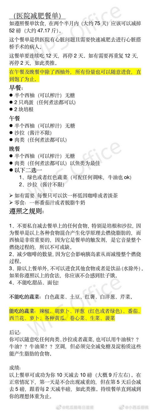 给心脏搭桥病人的减肥餐单,常人勿用!!!