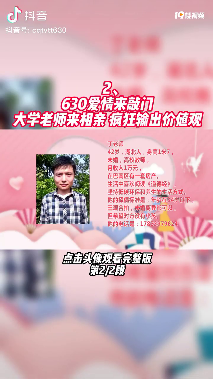 重庆电视630爱情来敲门。抖音116、117期。大学老师相亲