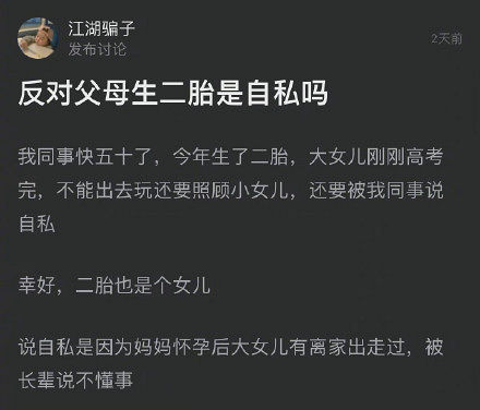反对父母生二胎是自私吗?同事女儿刚高考完,就让她照顾妹妹