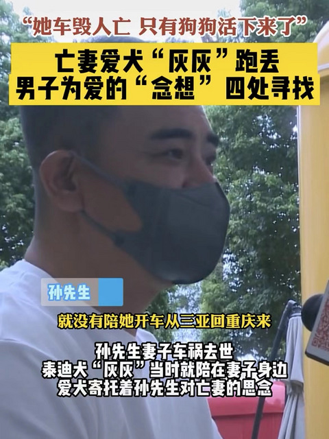 40几岁的重庆男人“为爱寻狗”自责泪洒现场 ,听这个爸爸说:妻子开车从三亚回重庆出车祸去世了,车毁人亡,唯一活着的就是车上跟着妈妈的狗狗“灰灰”,女儿今年才考上两江育才,家里却发生了这么大的事情,女儿说:爸爸,你为什么不找回妈妈的狗狗呢? 一句话让这个重庆爸爸非常自责…… 哎 ,现在求助630想找回狗狗“灰灰”,这可能是孩子和爸爸的唯一寄托了吧,找回狗狗,妈妈也就回来了, 给我看哭了!好不容易盼